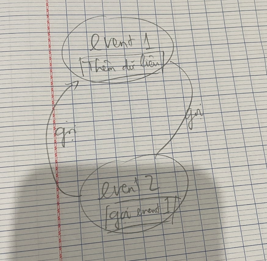 + Custom-event-2: Gọi đến custom-event-1.