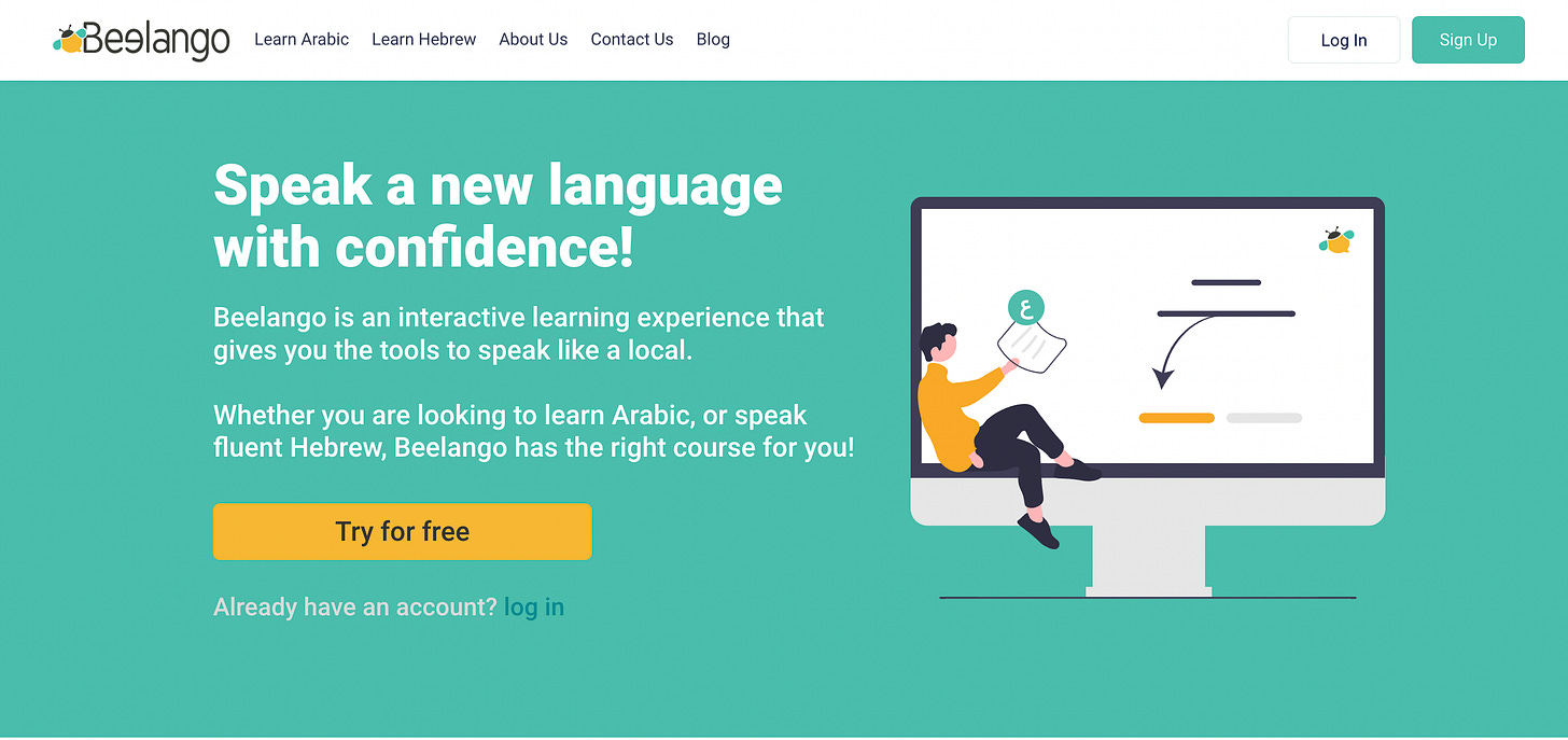 Beelango là ứng dụng học tiếng Ả Rập và tiếng Do Thái với hơn 100k học viên, đạt doanh thu hơn $300,000.