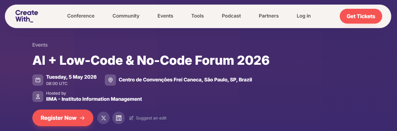 Diễn đàn AI + Low-NoCode Fórum 2026 sẽ chính thức diễn ra vào ngày 5/5/2026 tại Trung tâm Hội nghị Frei Caneca, trong khuôn khổ Triển lãm Công nghệ Kỹ thuật số 2026. Đây là một trong những sự kiện tiêu biểu tại Brazil tập trung vào xu hướng phát triển phần mềm nhanh, nơi các nền tảng LowCode và NoCode kết hợp cùng trí tuệ nhân tạo (AI) đang tái định hình cách doanh nghiệp triển khai chuyển đổi số.