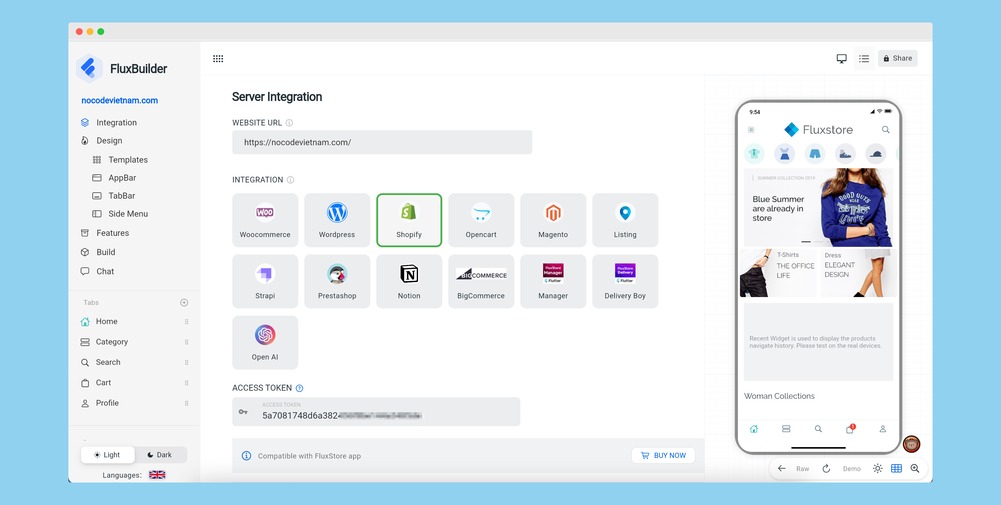 Hiện tại FluxBuilder chủ yếu tập trung vào việc tạo app ecommerce trên mobile (iOS, Android)