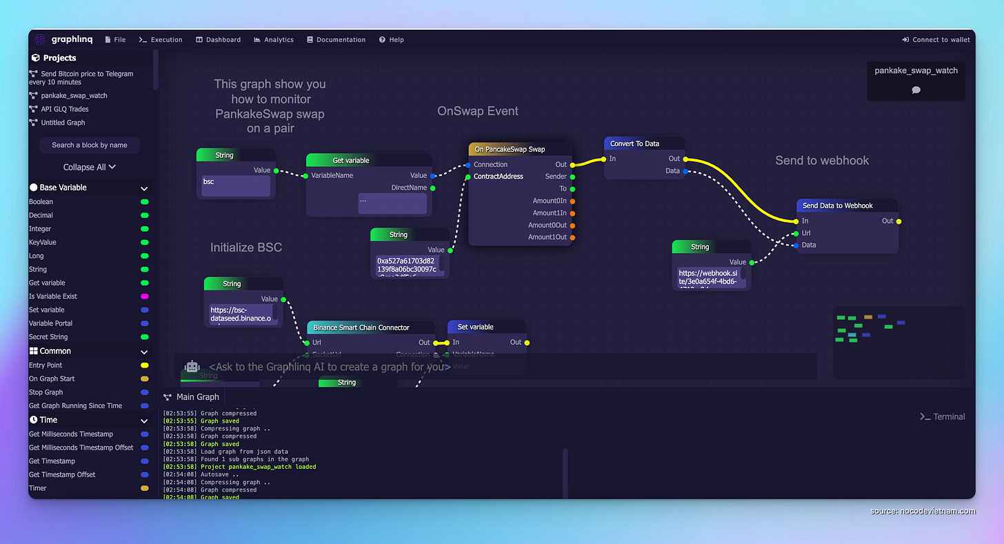 Với GraphLinq, bạn có thể xây dựng các ứng dụng tự động dựa trên các sự kiện on-chain và off-chain.