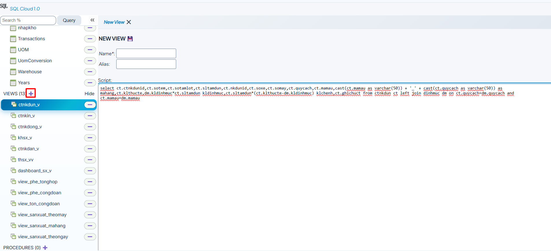 Khi làm việc trên Zilcode, bạn sẽ thường xuyên sử dụng SQL Studio tích hợp sẵn để thao tác với dữ liệu. Về bản chất, hệ thống này vẫn sử dụng SQL Server, vì vậy cách tạo VIEW hoàn toàn giống với SQL Server, chỉ khác ở giao diện thao tác.