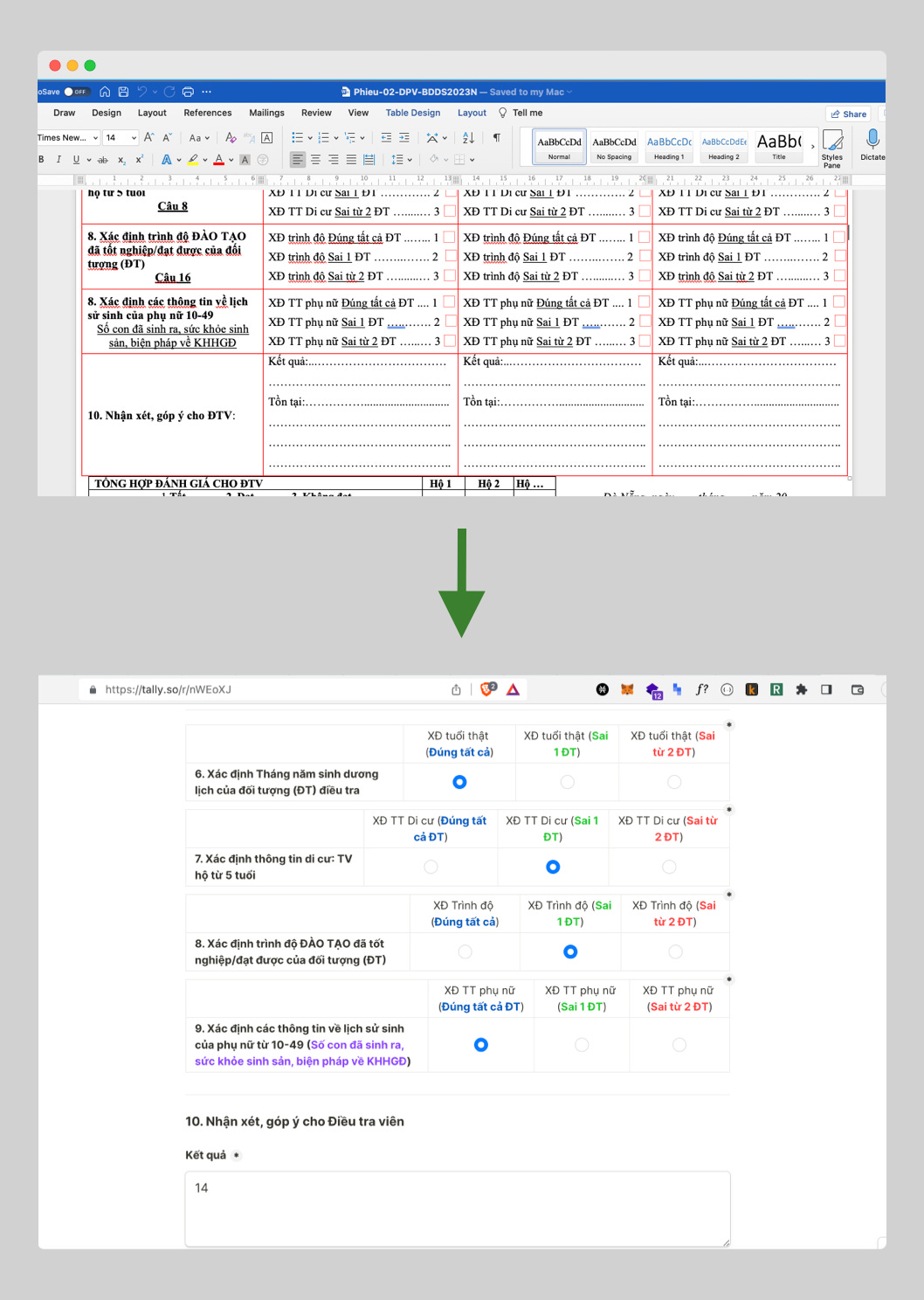 NỀN TẢNG A THANH CHỌN ĐỂ LÀM PHIẾU KHẢO SÁT LÀ TALLY.SO
