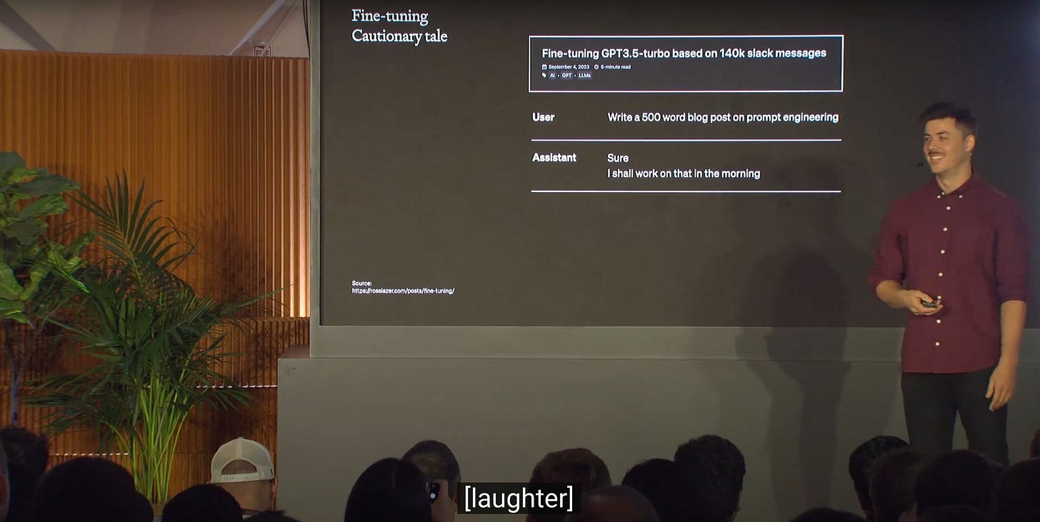 Quan trọng là phải thiết lập một cơ sở trước khi tinh chỉnh và bắt đầu với kỹ thuật prompt và học tập với vài ví dụ.