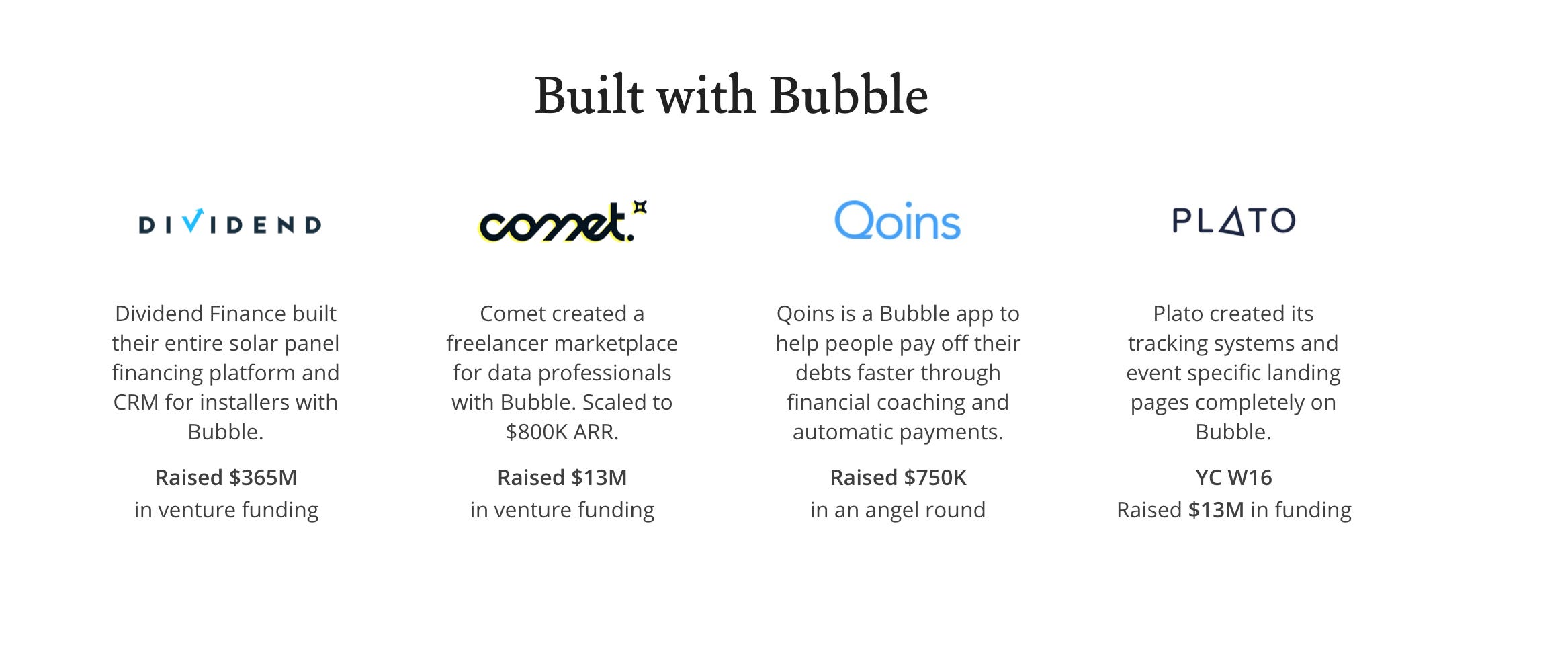 Cũng đã có nhiều startup gọi vốn thành công khi xây dựng app với Bubble rồi, nên bạn không cần phải lo lắng về công nghệ nữa.