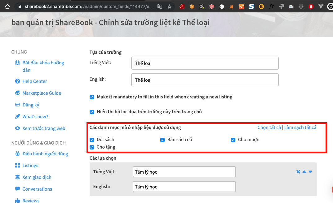 Tức là khi đăng một listing, user bắt buộc sẽ phải thêm loại danh mục này.